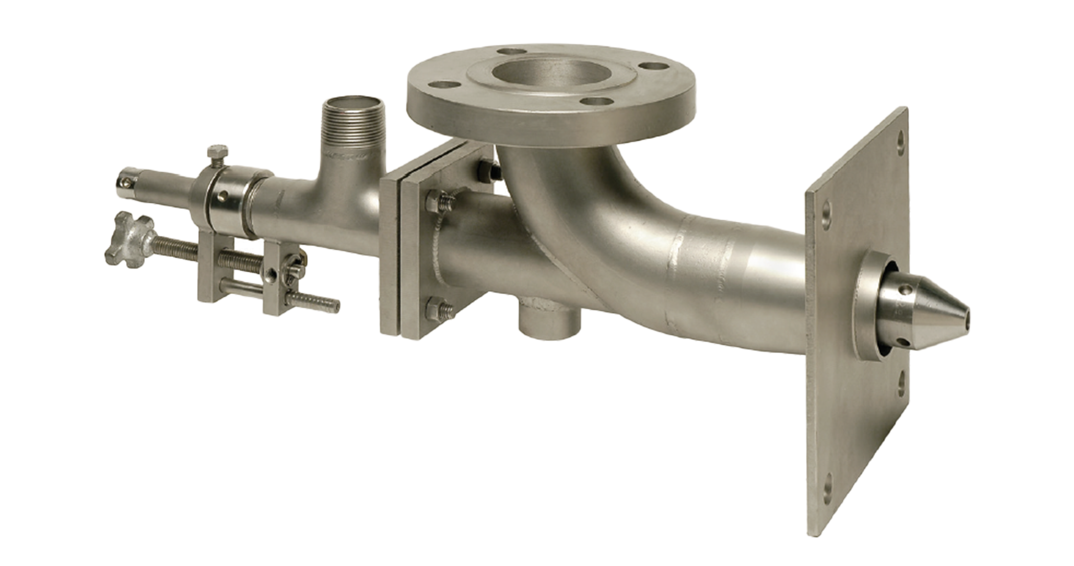 The Honeywell WGD burner is a water-cooled industrial gas burner built for use in regenerative glass furnace systems. It produces a flat, fan-shaped flame that spreads heat evenly across the glass surface, helping improve heat transfer and temperature uniformity. The burner is designed to be used with a retraction mechanism, allowing it to be pulled back from the furnace when not firing, which reduces fuel use and supports more efficient furnace operation. This combination of even heat distribution and low emissions makes the WGD burner a practical choice for glass melting and processing applications.